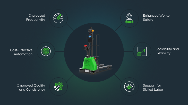 The rise of cobots brings a myriad of benefits to industries, businesses, and workers alike. Here are some of the key advantages:
