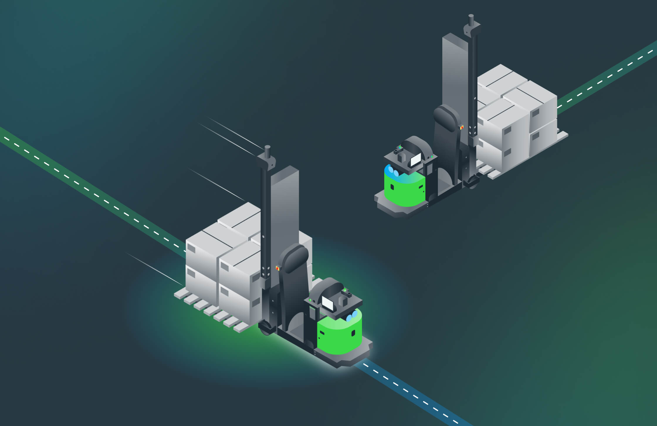 Once the pallet is full and organized, the AMR, with its mission not yet complete, retrieves the pallet. The AMR navigates through the maze-like expanse of the warehouse, avoiding obstacles and ensuring safe transport, finally depositing the pallet in a pre-designated storage or shipping zone. Here, larger equipment, such as forklifts, takes over.