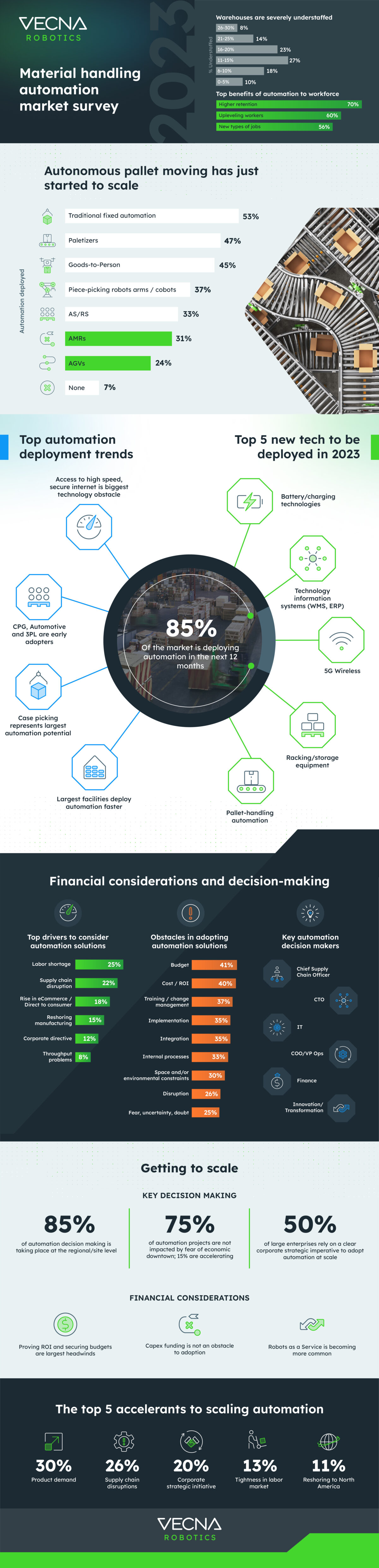 Build the business case for material handling automation with our latest market survey results. Get actionable insights on automation deployment trends, learn what to look out for during adoption, and evaluate the financial impact of automating your facility. Get in touch with us to learn more.